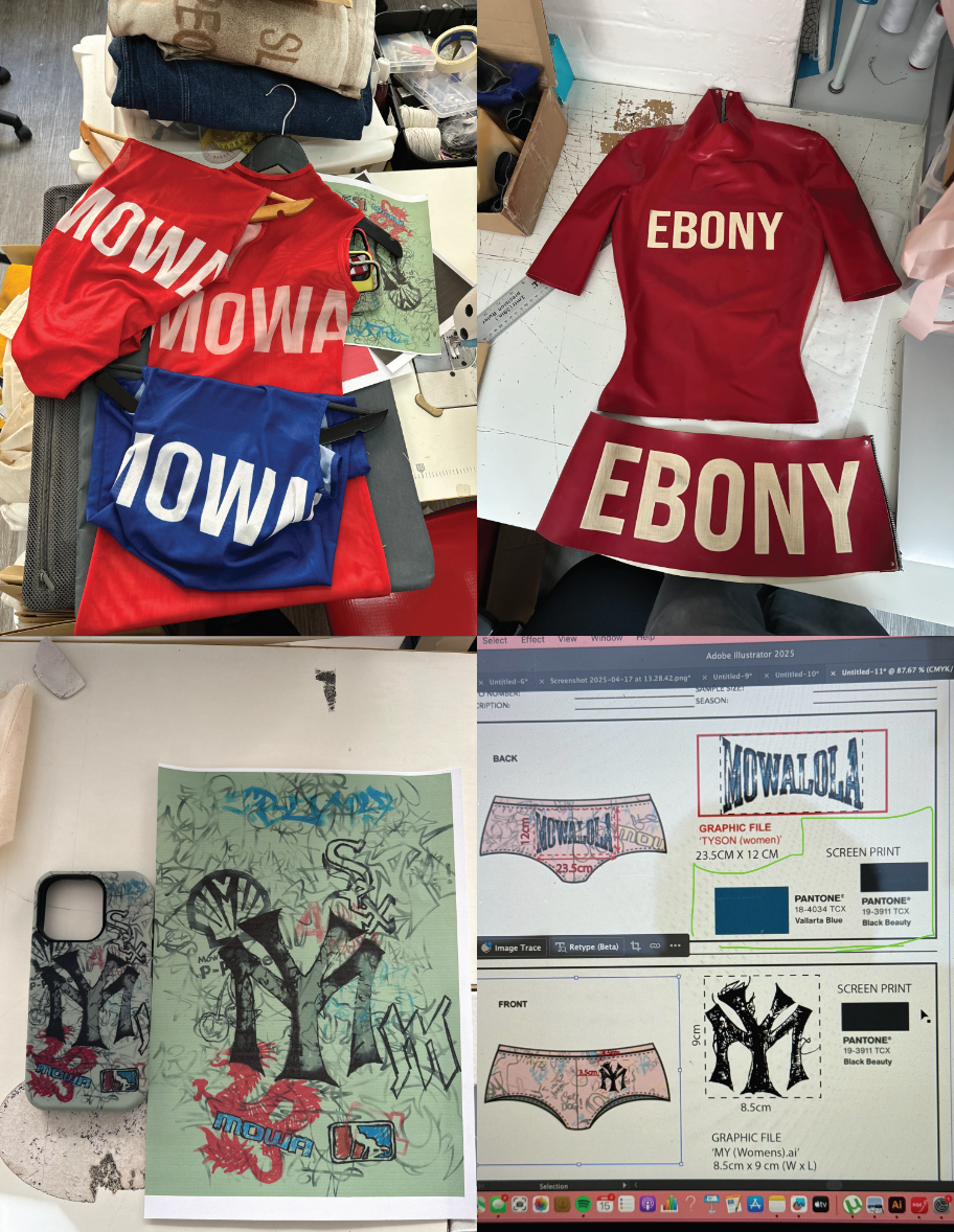 During my product development/production internship with Mowalola, I was doing tech-packs, finalising designs, rendering them, assisting fittings, adjusting patterns, communicating with core team about all the details. Contributing to multiple projects, including Usher, Latto, Rema and others. (MARCH25-JUNE25)